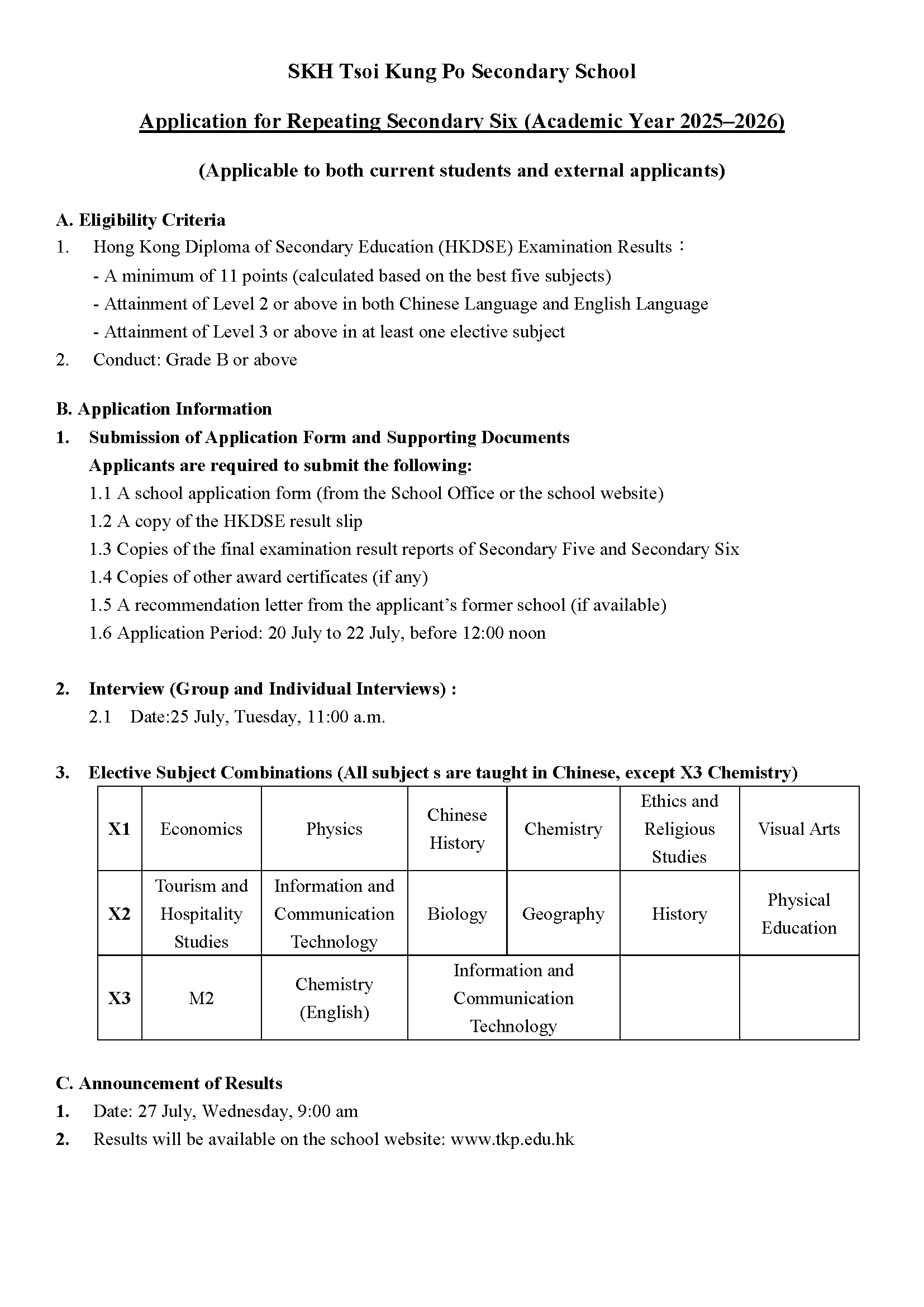 | 部分班別以英語教學科目 | 綜合科學、物理 |