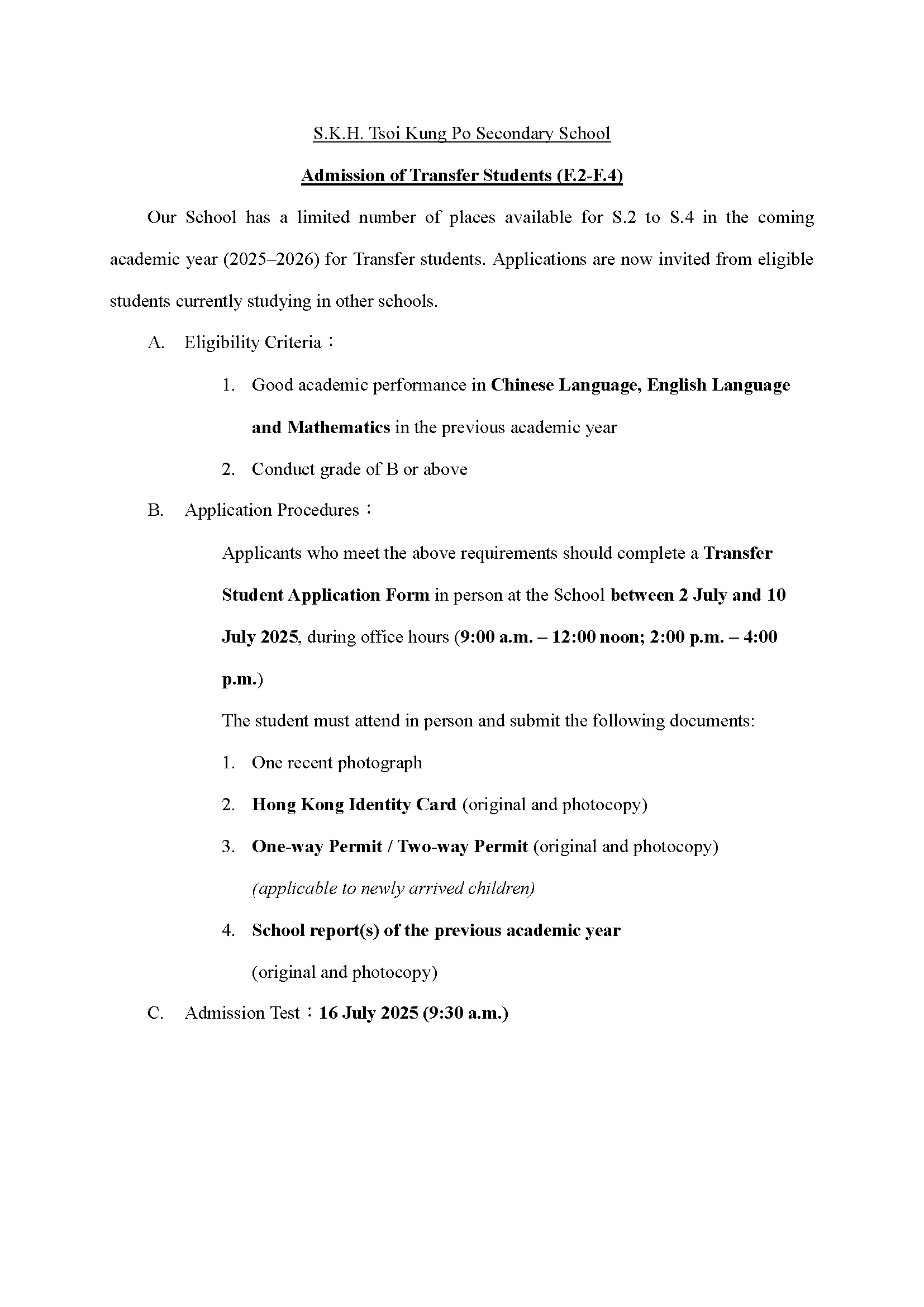 | Application for S1 Discretionary Places | 2026-1-2(Fri) – 2026-1-16 (Fri) |